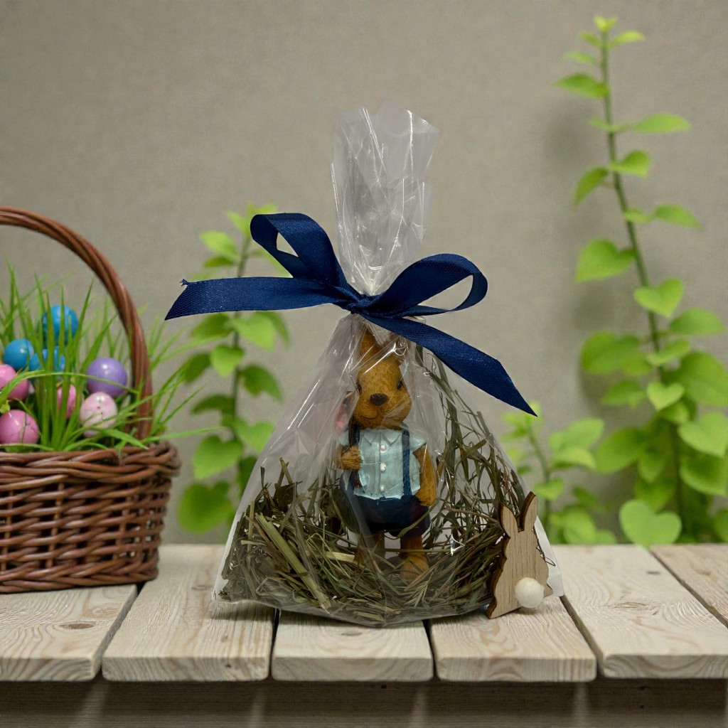 NYUSZISHOP.HU - Barna fiú nyuszi kék ruhában