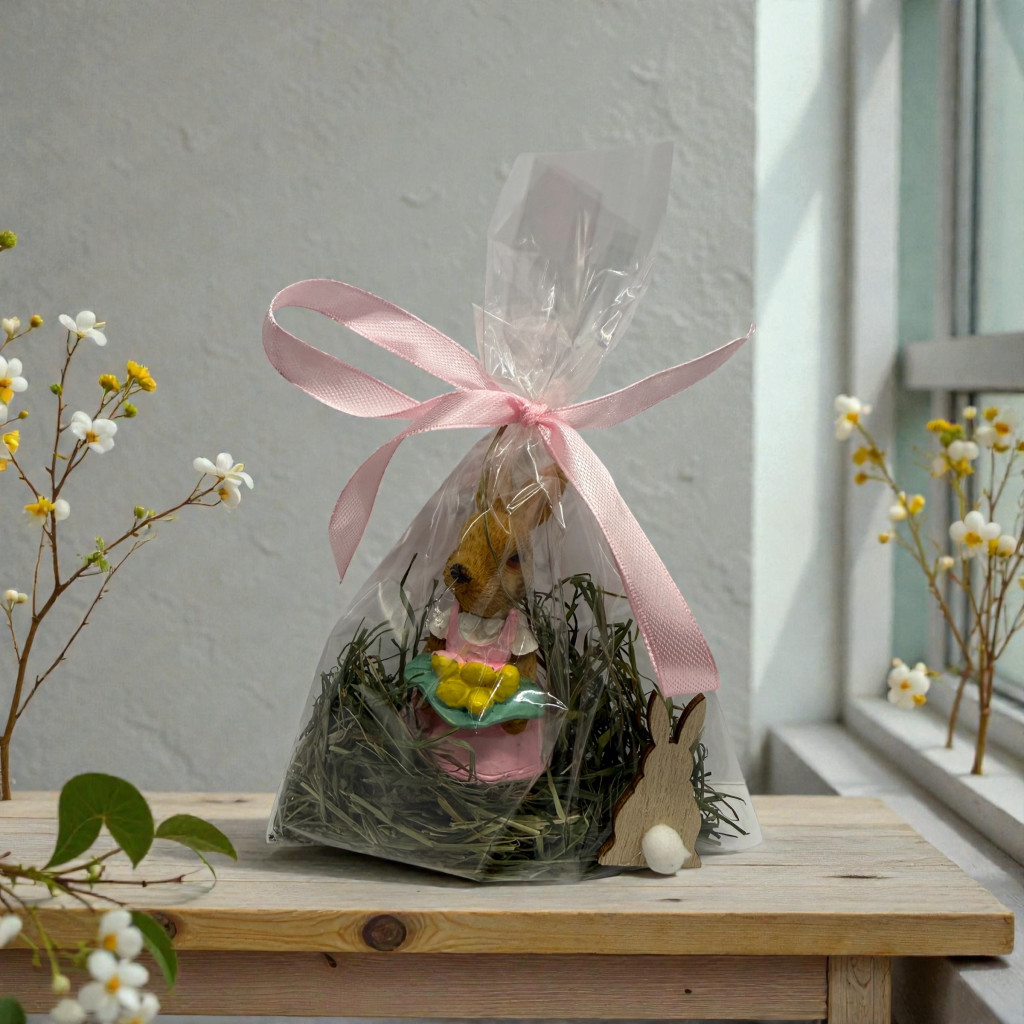 NYUSZISHOP.HU - Barna lány nyuszi rózsaszín ruhában