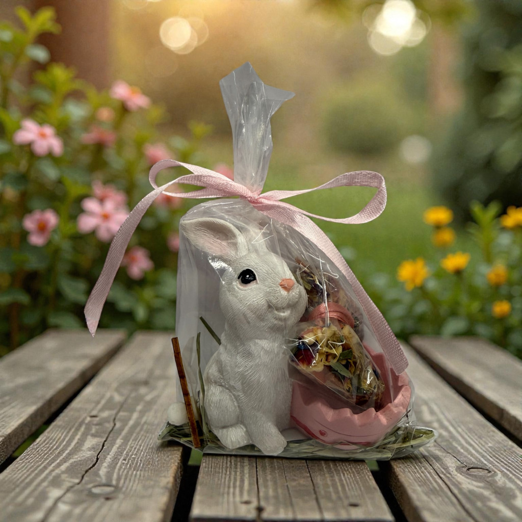 Dekorációs nyuszi tojástartóval, benne egy kis finomság kiskedvencednek! :)
