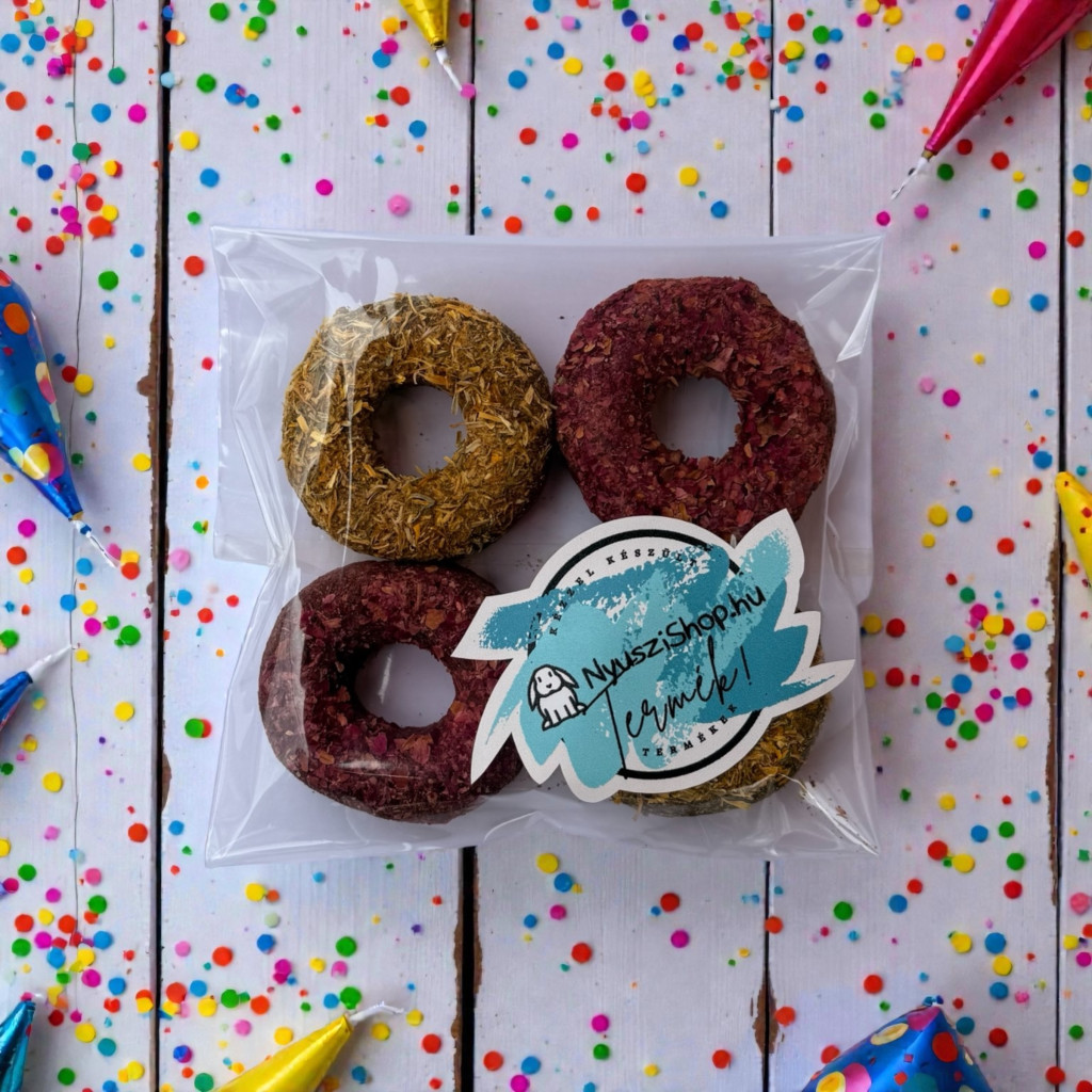 Ezeket a szuper fánkokat kifejezetten nyuszik, tengerimalacok, deguk, csincsillák és más növényevő kisemlősök számára alkottuk meg, hogy mindenki élvezhesse a fincsi rágcsát!