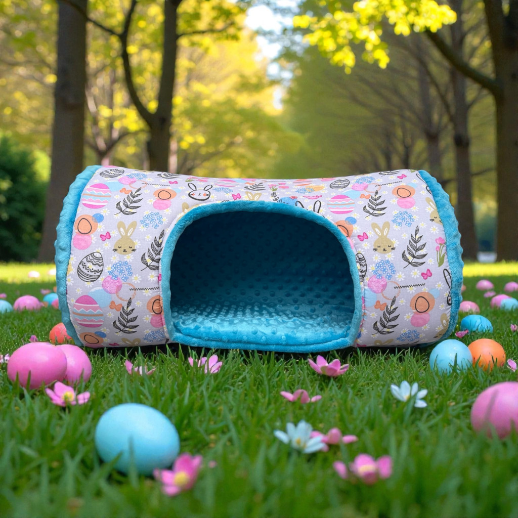 NYUSZISHOP.HU - XL Hengerházikó/bújó - Tojásos-nyuszis kék Ø27x50 cm