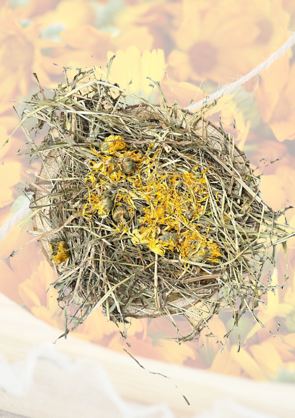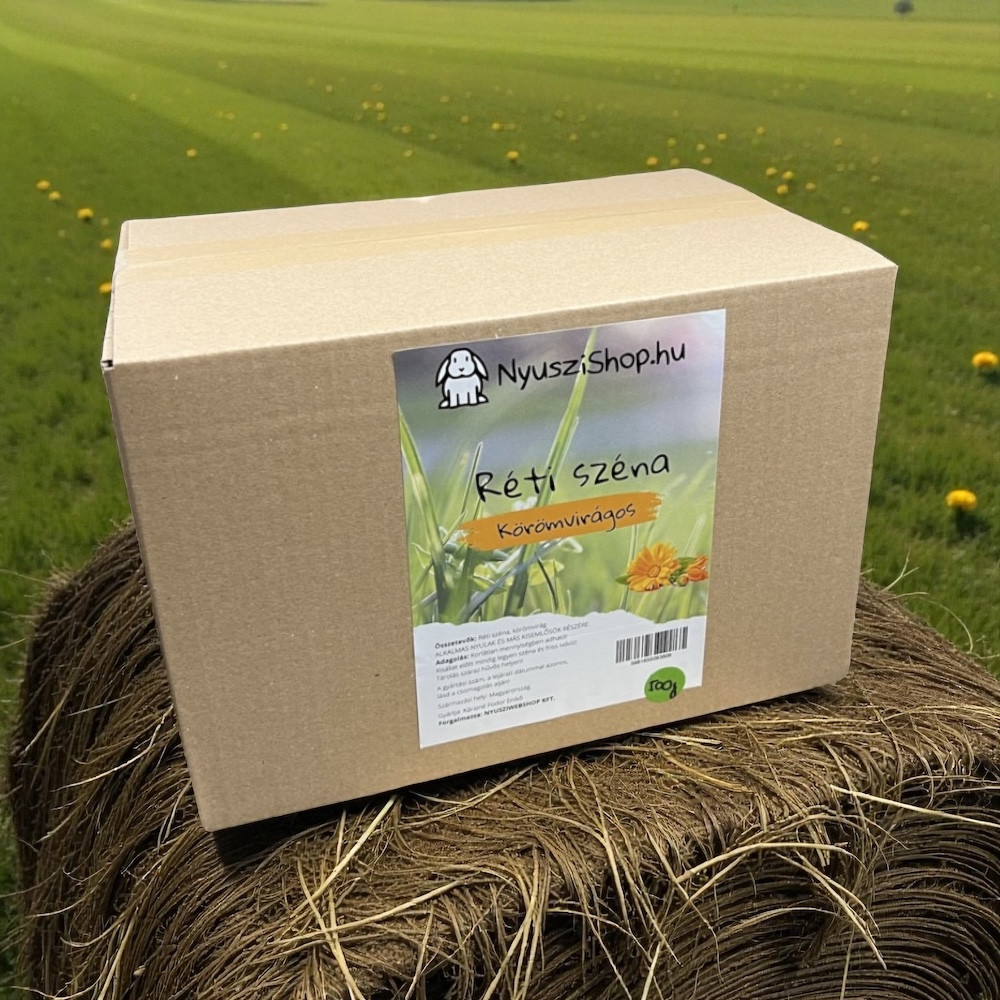 Friss, ropogós, pormentes réti széna nyulaknak és kisrágcsálóknak körömvirággal.